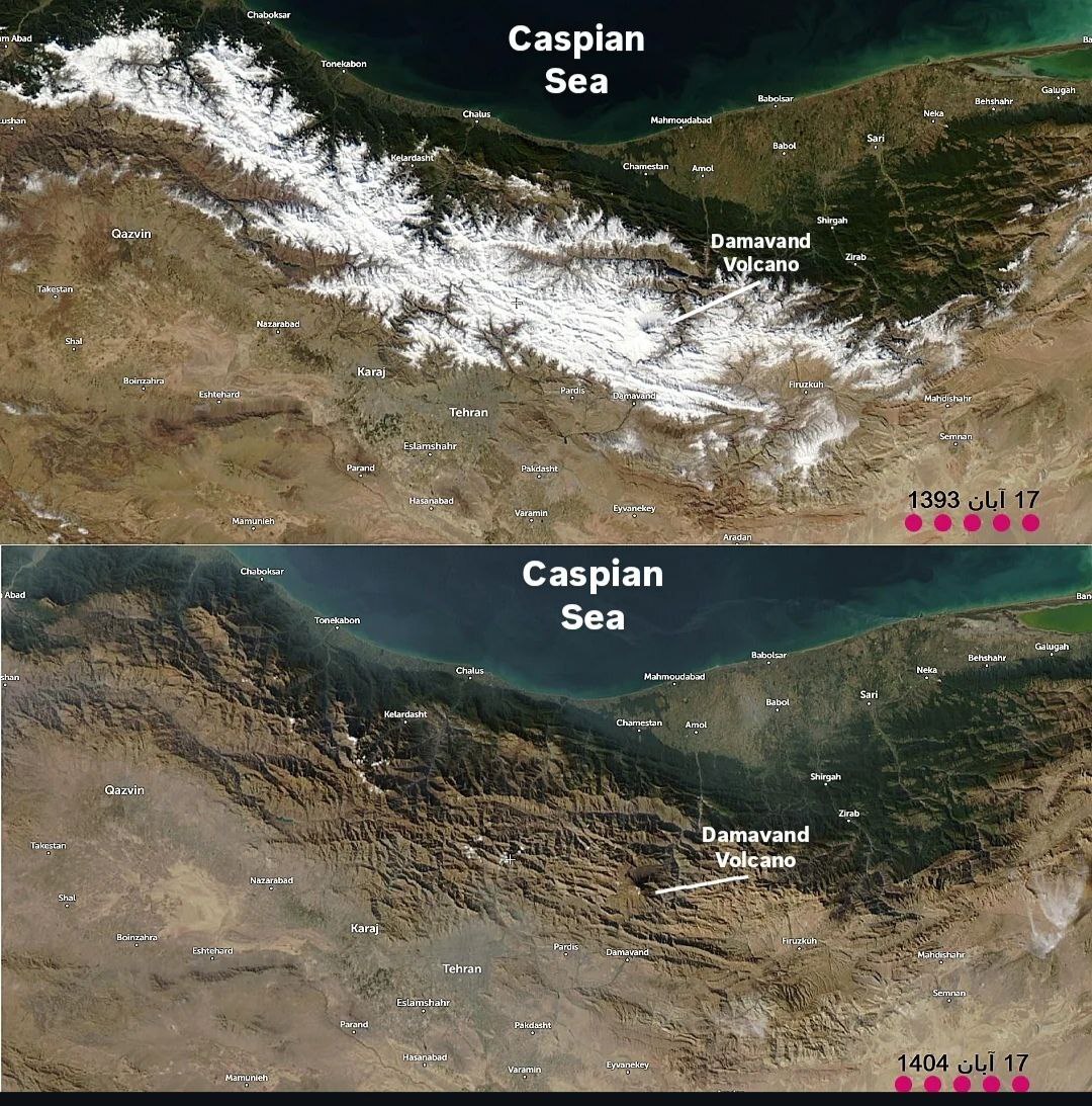 عکس: مقایسه حجم برف کوهها در آبان ۱۳۹۳ و آبان ۱۴۰۴