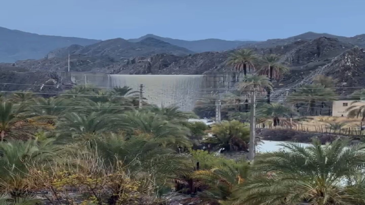 سرریز شدن سد «خمینی شهر» و طغیان رودخانه «تیدر» بشاگرد در شرق هرمزگان