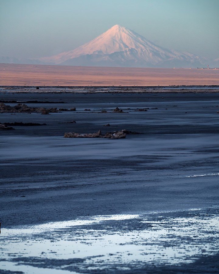 عکس: شکوه قله دماوند از دریاچه حوض سلطان قم